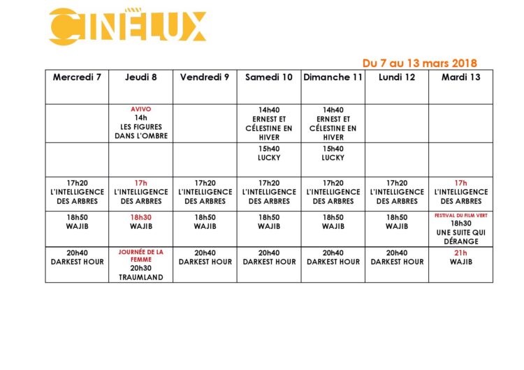 Programmation semaine du 7 au 13 mars 2018