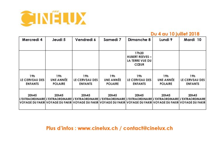 Programmation semaine du 4 au 10 juillet 2018