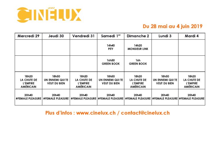 Programmation du 29 mai au 4 juin 2019