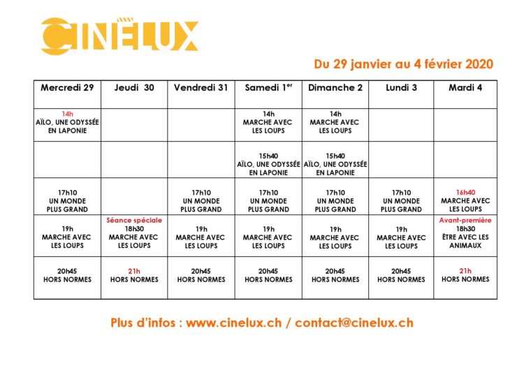 Programmation du 29 janvier au 4 février 2020