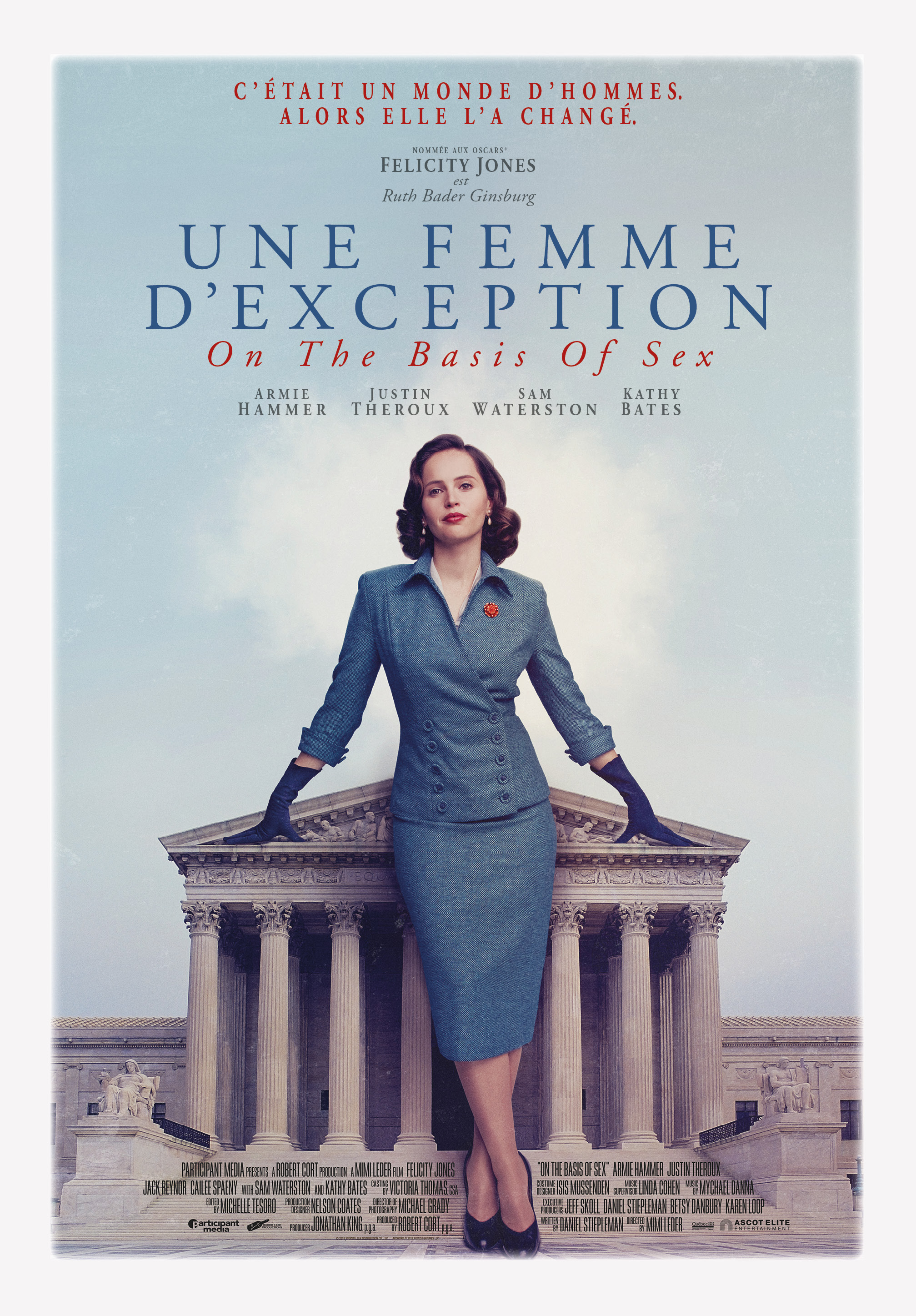 Ruth Bader Ginsburg, une jeune avocate, s’apprête à présenter un cas extraordinaire devant la Cour suprême et mettre fin à un siècle de discrimination sexuelle. Ruth Bader Ginsburg est seulement l’une des 9 femmes ayant terminé le cours de droit de Harvard de 1956. Malgré son talent, elle n’est engagée par aucun des cabinets d’avocats où elle postule. Elle saisit alors l’occasion de devenir la première femme professeure de droit à la Rutgers University. En s’inspirant du travail de l’avocate révolutionnaire Dorothy Kenyon, elle accepte un cas qui pourrait changer la donne. En unissant ses forces avec son mari, Ruth se prépare à livrer le procès de toute une vie. Même si elle est sous-estimée à la fois par la partie adverse et les juges, son sang-froid ébranlera ses détracteurs et lui permettra de débuter un parcours historique qui la mènera à la plus haute instance judiciaire du pays. |