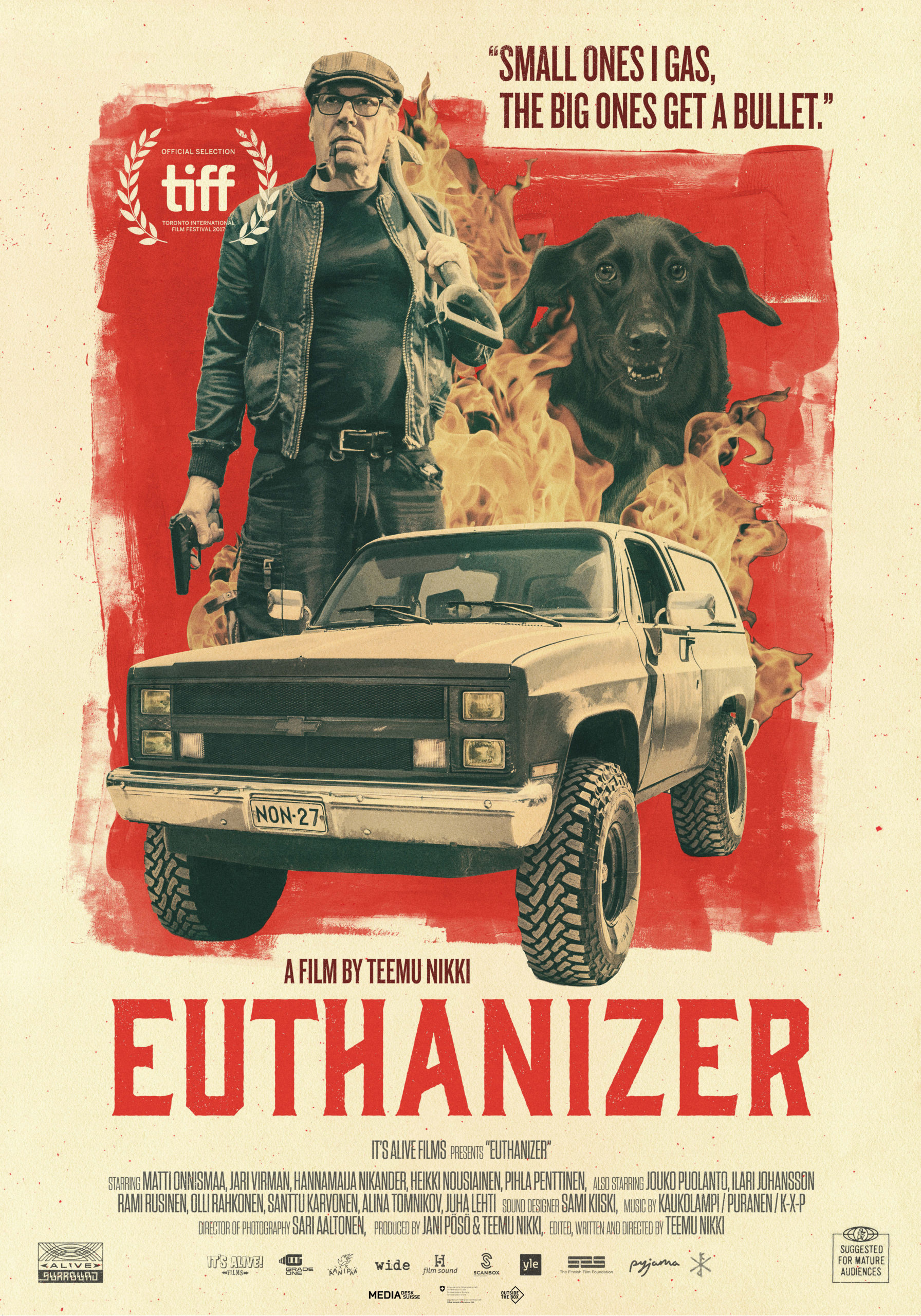 Meilleur scénario au Tokyo International Film Festival fin 2017, Euthanizer est, pour le moins, une comédie noire. Très noire, dérangeante, et hilarante. Cinéaste iconoclaste qui doit puiser son inspiration dans les nuits sans fin des hivers finnois, Teemu Nikki tisse une histoire d’amour autour d’un mécanicien impassible qui arrondit ses fins de mois en euthanasiant des chiens. Et pas seulement.