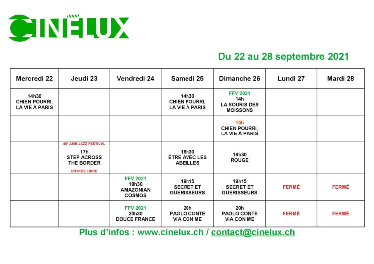 Programmation du 22 au 28 septembre 2021