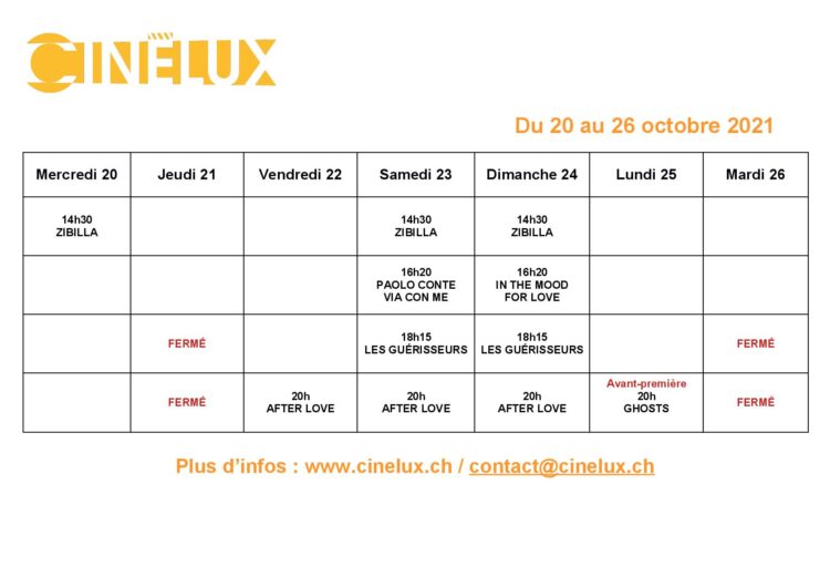 Programmation du 20 au 26 octobre 2021