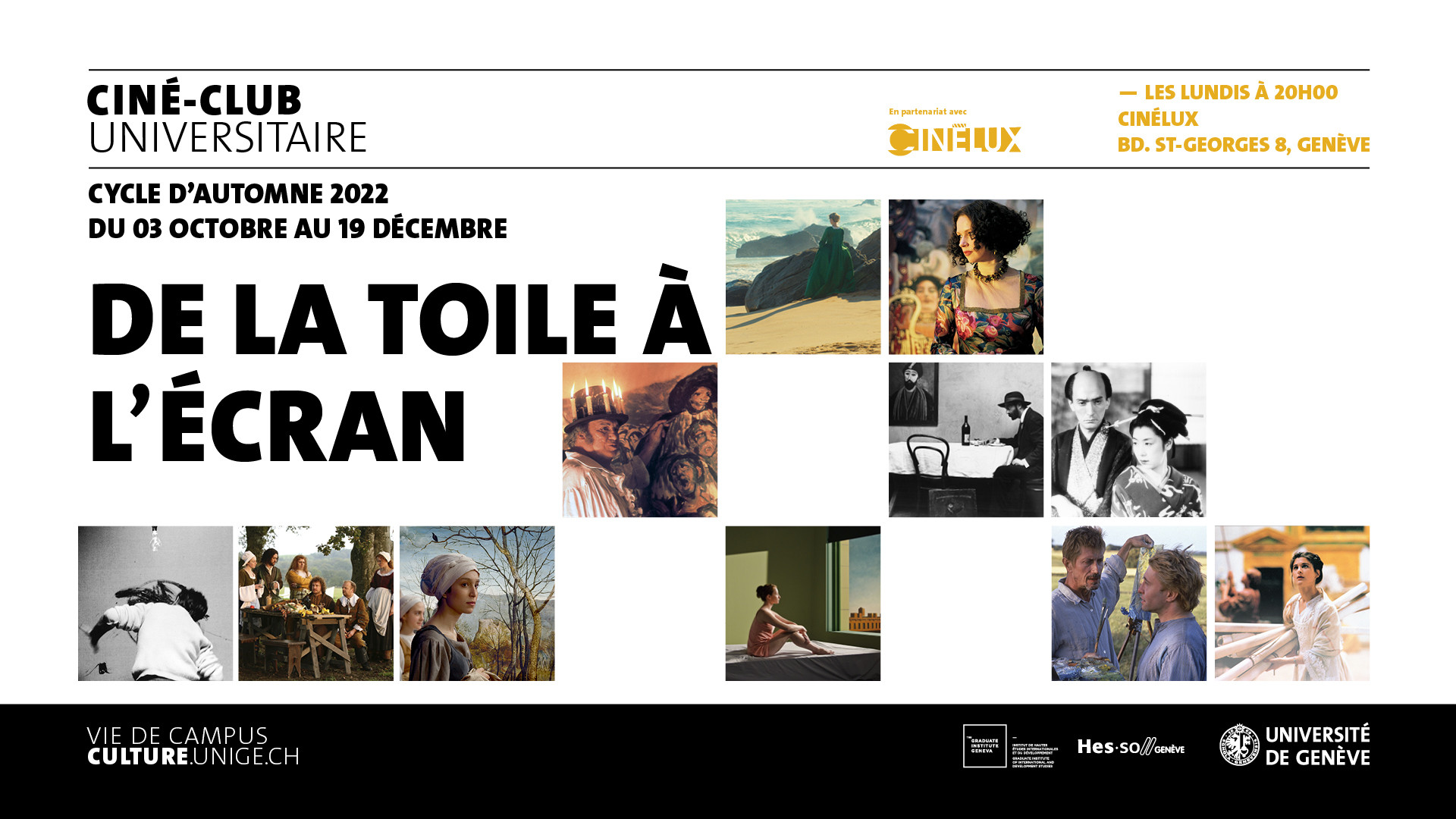 La peinture, riche de siècles de techniques et de représentations, a influencé le cinéma dès ses débuts. Si, au cours du XXème siècle, les deux disciplines se sont inspirées mutuellement, il arrive que le septième art puise de façon explicite chez un peintre, un tableau, un mouvement, pour nous faire pénétrer plus en détails dans le monde d’un artiste tout en repoussant les limites du langage de son propre médium. De la toile à l’écran propose des essais cinématographiques qui tentent cette adaptation à travers des films singuliers qui sont des déclarations d’amour à la peinture, et qui font le pari de nous faire entrevoir des concepts insaisissables que seul le cinéma, avec sa synthèse de moyens, permet de rendre tangibles : l’inspiration, le processus créatif d’un peintre et l’esprit de son temps.