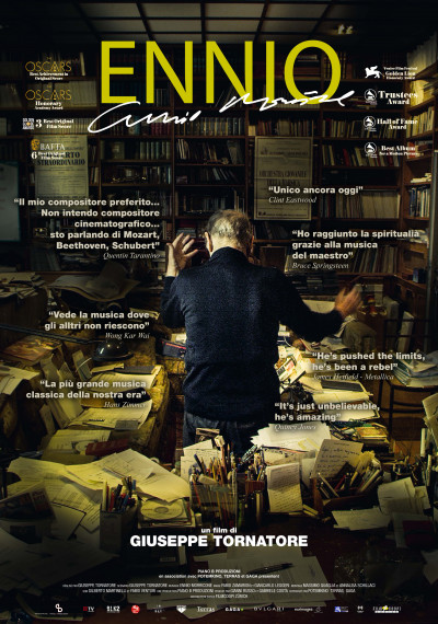 A l’âge de 8 ans, Ennio Morricone rêve de devenir médecin. Mais son père décide qu’il sera trompettiste, comme lui. Du conservatoire de musique à l’Oscar du meilleur compositeur, l’itinéraire d’un des plus grands musiciens du 20ème siècle. « Ennio » est le portrait d’Ennio Morricone, le compositeur le plus populaire et prolifique du XXème siècle, le plus aimé du public, deux fois récompensé aux Oscars, et auteur de plus de 500 bandes originales. Le documentaire le décrit au travers d’une longue interview de Giuseppe Tornatore et de témoignages d’artistes et réalisateurs, tels que Bernardo Bertolucci, Marco Bellocchio, Dario Argento, les frères Taviani, Oliver Stone et Quentin Tarantino. Le film va à la rencontre mais aussi l’origine de certaines de ses intuitions musicales, comme le cri du coyote dans « Le Bon, la Brute et le Truand », ou le claquement rythmé des mains sur des boites de conserves par des grévistes à la tête d’une marche de protestation dans les rues de Rome, qui inspirera le grand thème de « Pereira prétend ». Une aptitude à l’invention qui se confirme dans son amour constant pour la musique et dans sa vocation à une expérimentation constante.