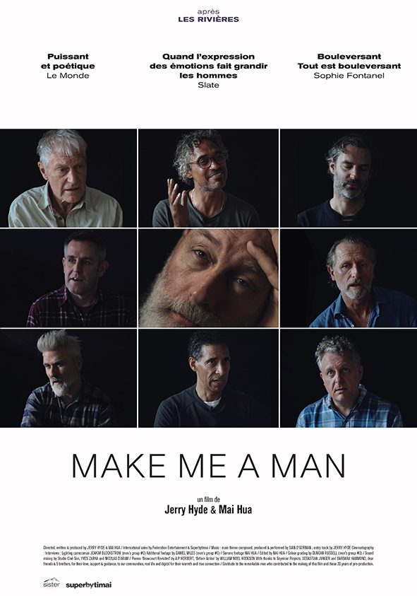 Séance dans le cadre du spectacle Holy Shit!, suivie d’une discussion en présence la réalisatrice Mai Hua et de Sarah Marcuse, metteuse en scène et interprète du spectacle Holy Shit! Jerry Hyde, thérapeute londonien, a créé depuis 25 ans des cercles de paroles où des hommes se réunissent et essaient de guérir de leurs blessures. Dans ce récit documentaire, des hommes de 40 à 70 ans abordent, face caméra, leur enfance, leur sexualité mais aussi l’injonction permanente à la virilité. Des sujets qui, petit à petit, les conduisent à dévoiler leur vulnérabilité. Que signifie être un homme aujourd’hui ? Comment, dans un monde patriarcal, être en accord avec ses ressentis et ses émotions ? |
