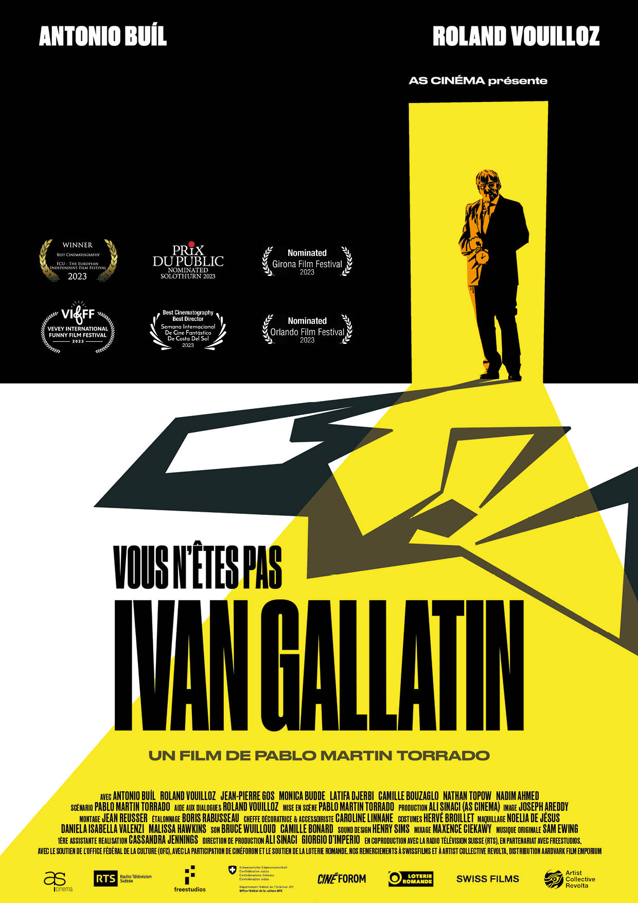 Un respectable propriétaire d’immeuble visite un de ses locataires, un pauvre diable qui ne paye pas le loyer depuis longtemps. Le locataire récalcitrant est étonné quand, au lieu d’exiger la dette, le propriétaire lui tend une horloge. Il revient à la charge avec un réveil, puis une pendule, puis une autre et une autre. Le locataire sombre lentement dans la psychose: les montres sont-elles réelles? Est-ce une hallucination ou fait-il l’objet d’une manipulation machiavélique? VOUS N’ÊTES PAS IVAN GALLATIN est un thriller surréaliste teinté d’humour décalé. Un duel sous haute tension, au rythme tourbillonnante, dans une Genève intemporelle. Un tic-tac obsédant, une bande son originale implacablement inspirée par la mécanique horlogère, et ses redoutables rouages. |