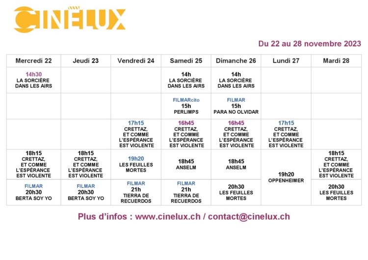 Programmation du 22 au 28 novembre 2023