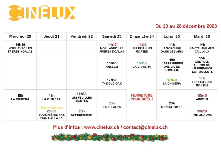 Programmation du 20 au 26 décembre 2023