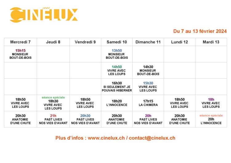 Séance spéciale le jeudi 8 février 2024 à 18h30 en présence de : J. MOULIN : co-fondateur et directeur de l’ONG Oppal (figurant dans le film) ; A. STRAHM : co-présidente de l’association MiddleWay ; G. DANDLIKER : naturaliste passionné et expérimenté ; C. FISCHER : membre du comité de la SSBF (Société Suisse de Biologie de la Faune). Le réalisateur nous parle du loup d’une manière totalement nouvelle et inattendue. Il y a déjà des loups peu partout en Suisse. Il faut donc apprendre à « vivre avec les loups ». Dépassant les postures polémiques, l’auteur nous amène de manière sensible et cinématographique à percevoir différemment la nature qui nous entoure et les animaux qui l’habitent : chevreuils, chamois, bouquetins… Un voyage de Jean-Michel Bertrand avec de surprenantes rencontres, humaines et animales, avec son style inimitable, le réalisateur nous entraîne dans des réflexions naturalistes et philosophiques sur la nature. |